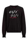 Een regular fit T-shirt van katoen met toegevoegde stretch en een geprinte en velours opdruk. Het model heeft een ronde hals, lange mouwen met gesmokte boorden en elastiek onderaan het T-shirt.