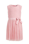 Een regular fit jurk van geweven kwaliteit met embroideries, tule rok en een strik. Het model heeft een ronde hals en ritssluiting.