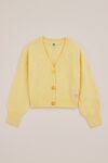Lief, zacht, met glinsterende details. Dit vest heeft een regular fit, een V-hals en lange mouwen, en sluit met goudkleurige knopen in de vorm van zonnetjes. Linksonder is “golden hours” subtiel geborduurd voor een schattige touch.