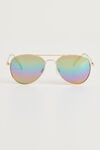 Een UV-bestendige zonnebril van metaal met donkere glazen.