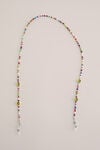 Voor kinderen die op vakantie hun spullen beter bijhouden dan hun ouders. Dit brillenkoord heeft gekleurde kralen met twee smileys per kant, siliconen lusjes en een zilverkleurige karabijnhaak. Maakt de zonnebril stedentrip-proof.