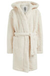 Een regular fit badjas van teddy kwaliteit met oortjes en een embroidery. Het model heeft een capuchon, twee steekzakken en een afneembare ceintuur om de taille.